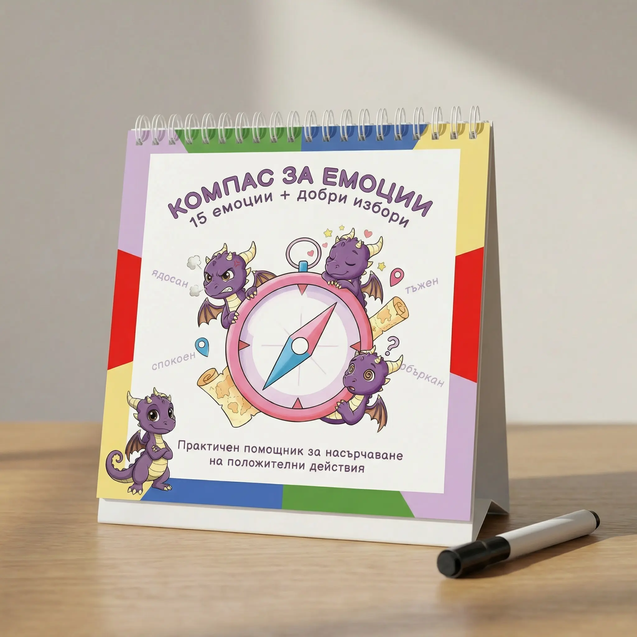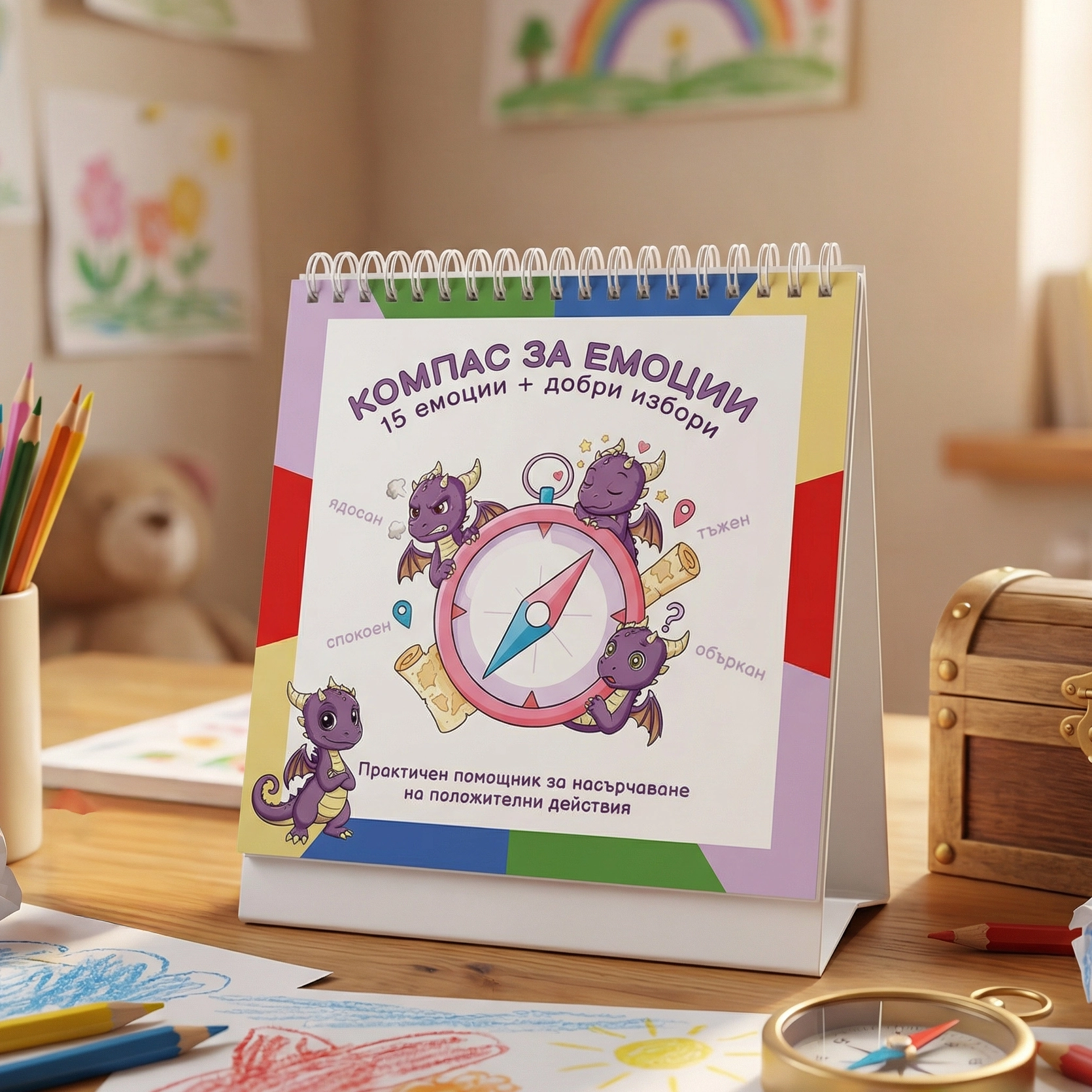 Когато детето е на ръба, „Компас за емоции“ му помага да покаже какво чувства, вместо да избухне. Ти спираш да гадаеш. И започвате да се разбирате.